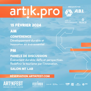 L’ArtikPro présenté par ABI est un rendez-vous hivernal unique axé sur la culture électronique, l’innovation et le développement durable qui réunit des acteurs clés et des professionnels du milieu de l’industrie événementielle et touristique pour une journée d’échanges enrichissants! Panels, rencontres et salon sont proposés!